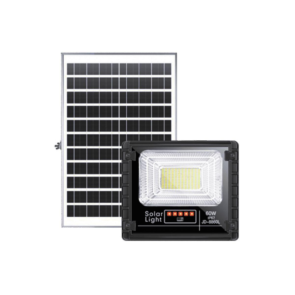 JD-8860L là mẫu đèn năng lượng mặt trời 60W được nhiều khách hàng lựa chọn nhờ khả năng chiếu sáng mạnh, tiết kiệm điện tuyệt đối và hoạt động bền bỉ ngoài trời. Sản phẩm ứng dụng công nghệ chuyển đổi năng lượng mặt trời thành điện năng, giúp giảm chi phí vận hành lâu dài và thân thiện với môi trường.